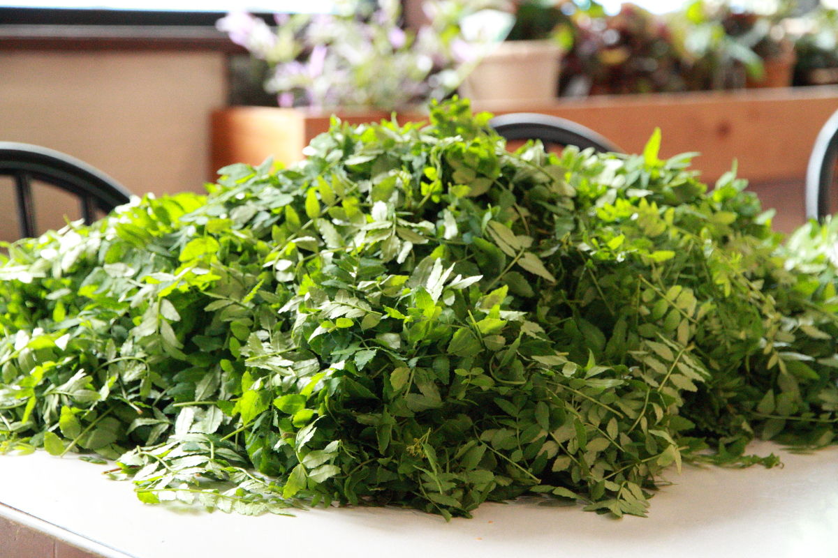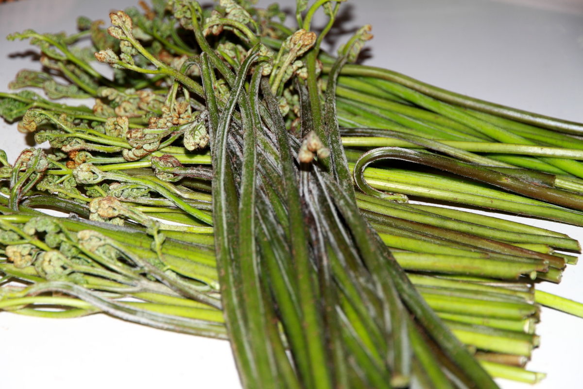 冷蔵庫の中身が山盛りの山菜でパンパンです